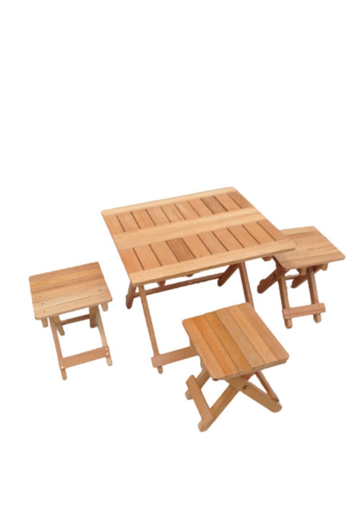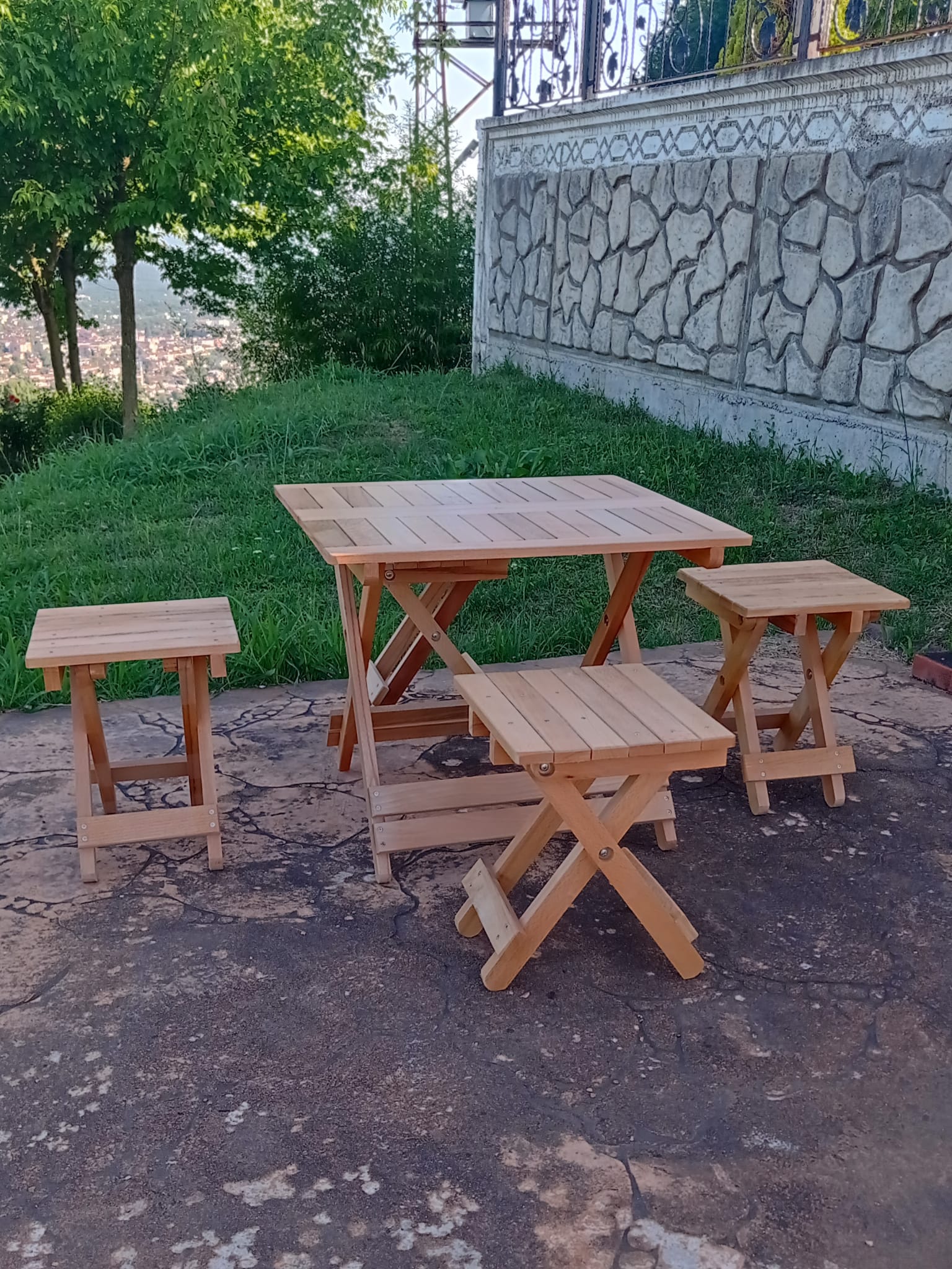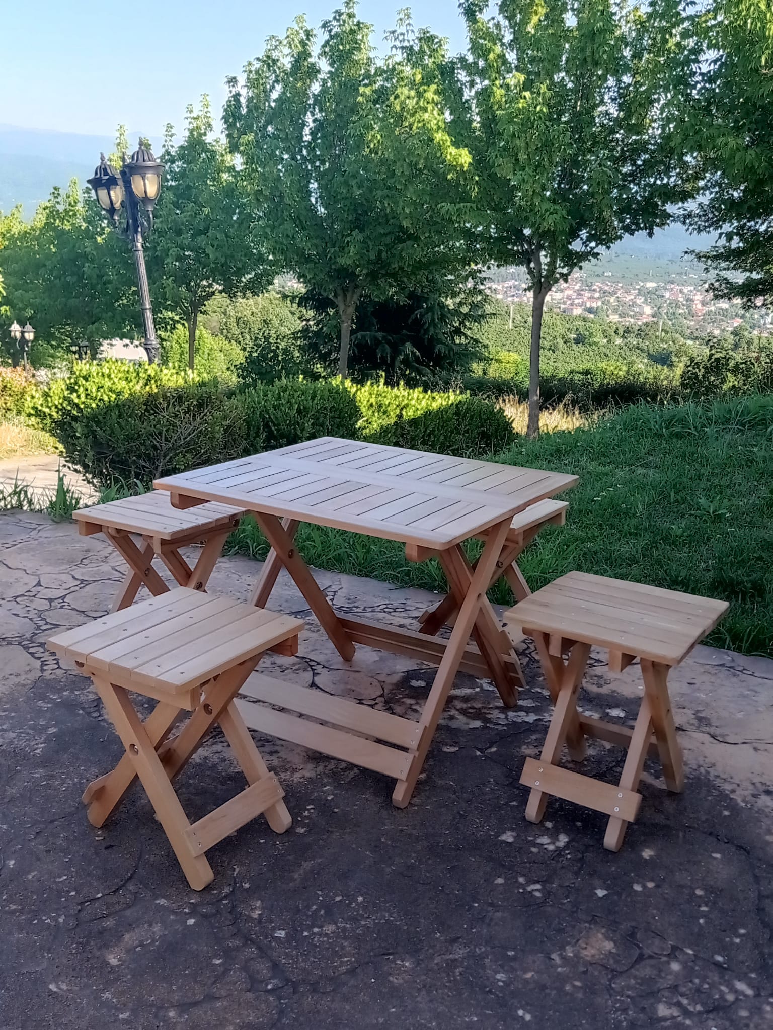 Ahşap katlanır masa ve tabure takımı piknik masası takımı Masa ebat: 55x60cm yükseklik 55cm Tabure abat 30x30 cm yükseklik 36cm Paket içeriği:1 adet ahşap katlanır masa 4 adet ahşap katlanır tabure Ürünümüz vernikli mobilya kıvamındadır. Katlanabilir özellikte yer kaplamaz bir takımdır. Araçlarınızın bagajına ve balkonlarınıza yer kaplamadan kolayca yerleştirebilirizsiniz.