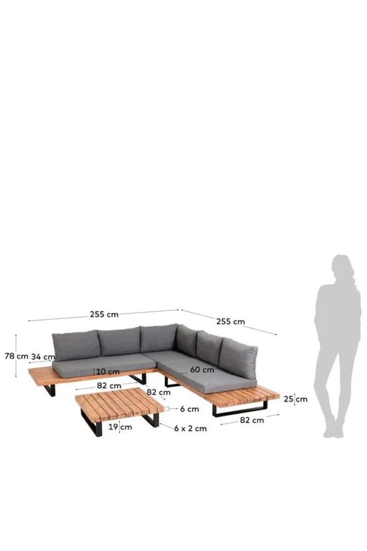 Köşe takımı 255x255x82cm ölçüleri ile geniş oturma alanı sağlar.