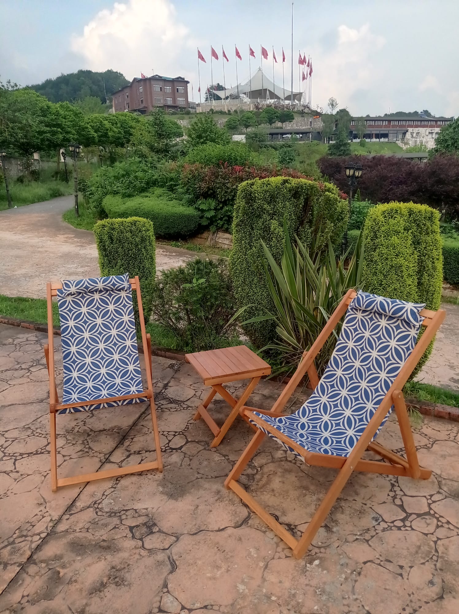 2 adet şezlong 1 adet katlanır sehpa